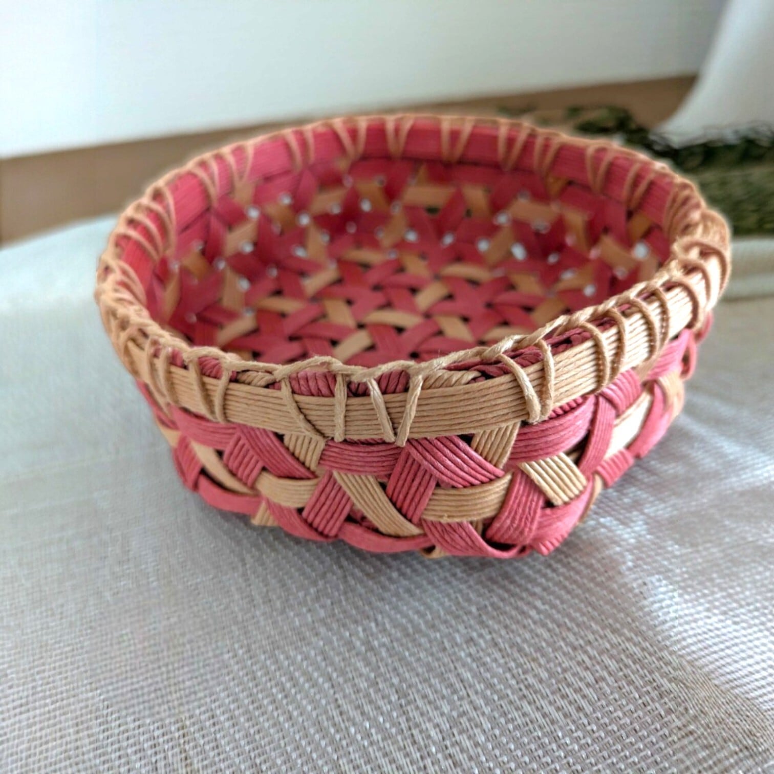 クラフトバンドで作った丸い形の可愛い小物入れです。