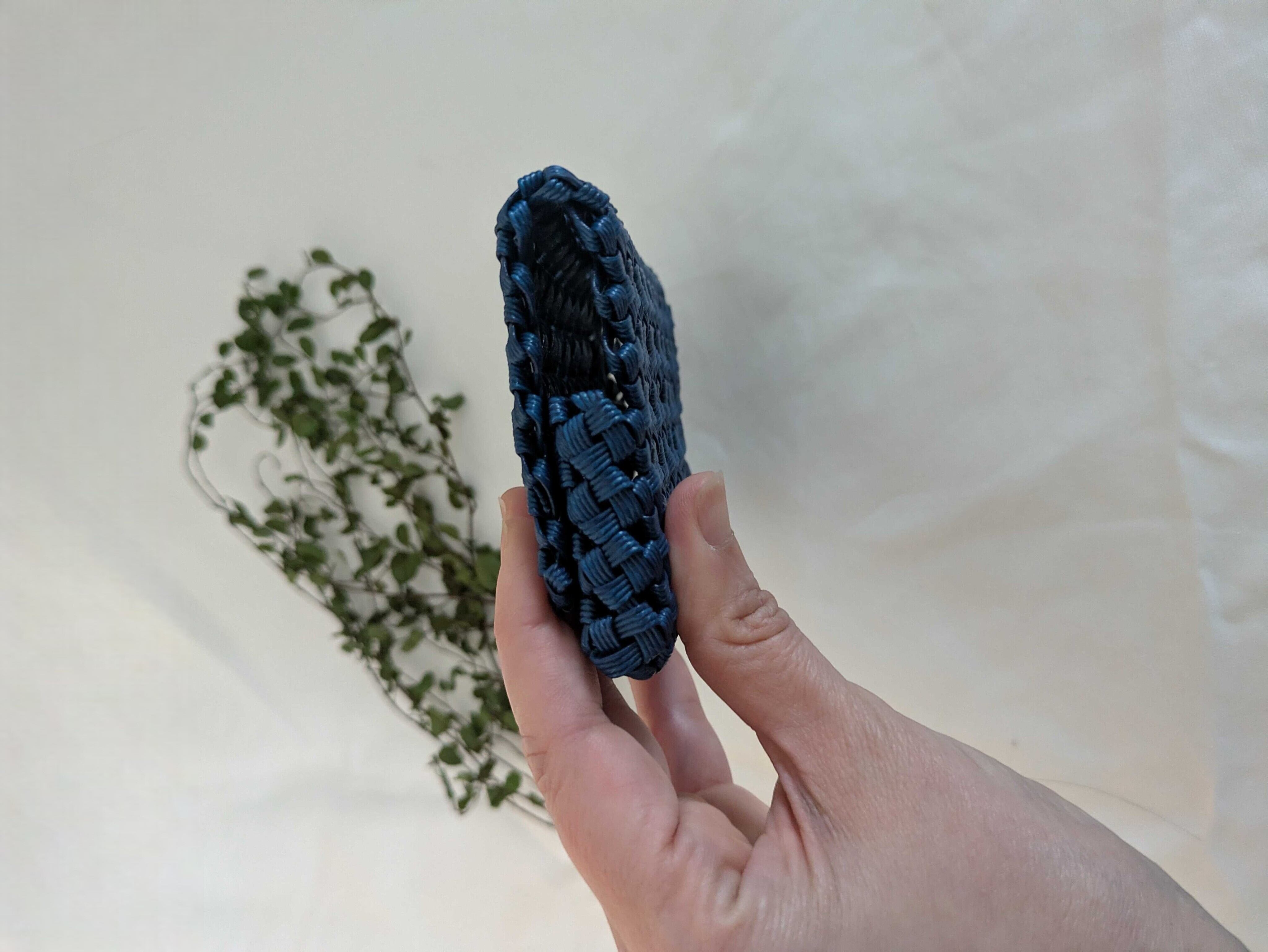 カードや名刺などを入れられるサイズで作成しています。名刺だと30枚程度入れられます。重さは約44グラムと軽量です。