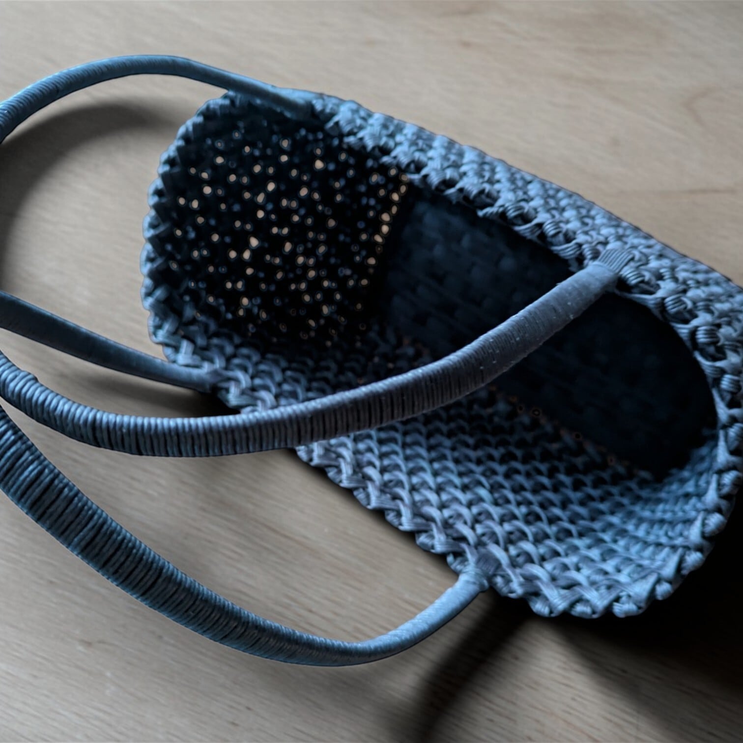 細いクラフトバンドを使い、1つひとつの編み目が均一で美しく仕上がるように丁寧に編み込みました。