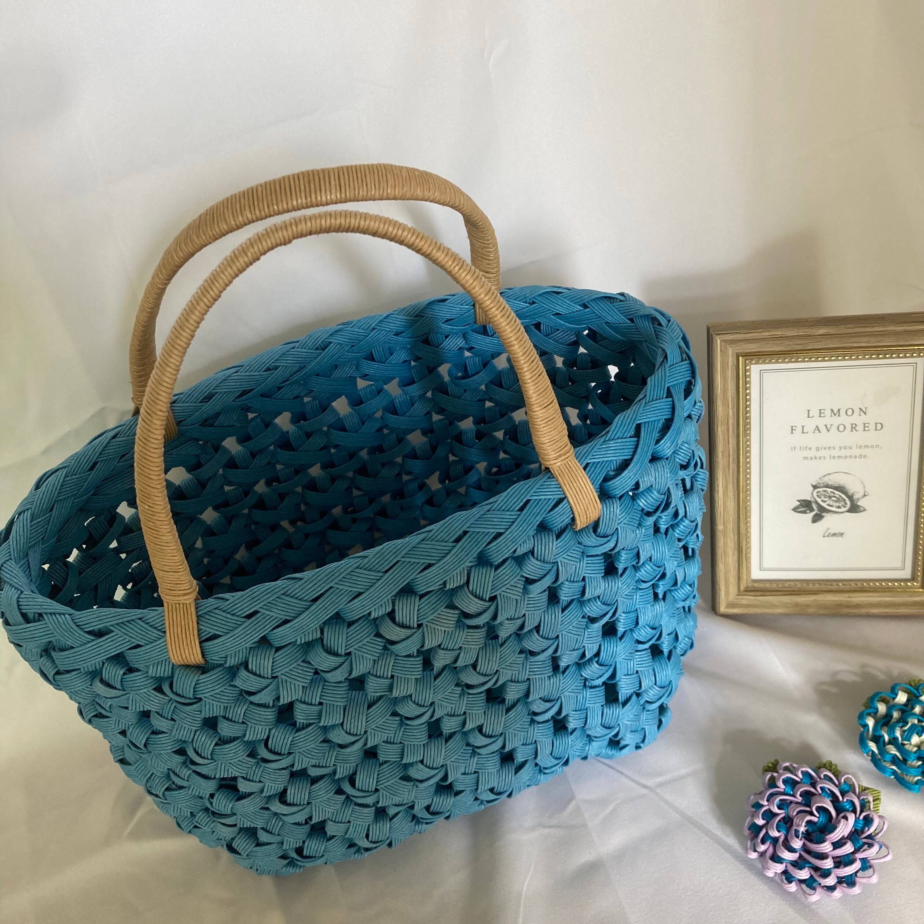 Toyoecocraftがお届けする、夏の装いに爽やかさを添えるアクアブルーのかごバッグです。