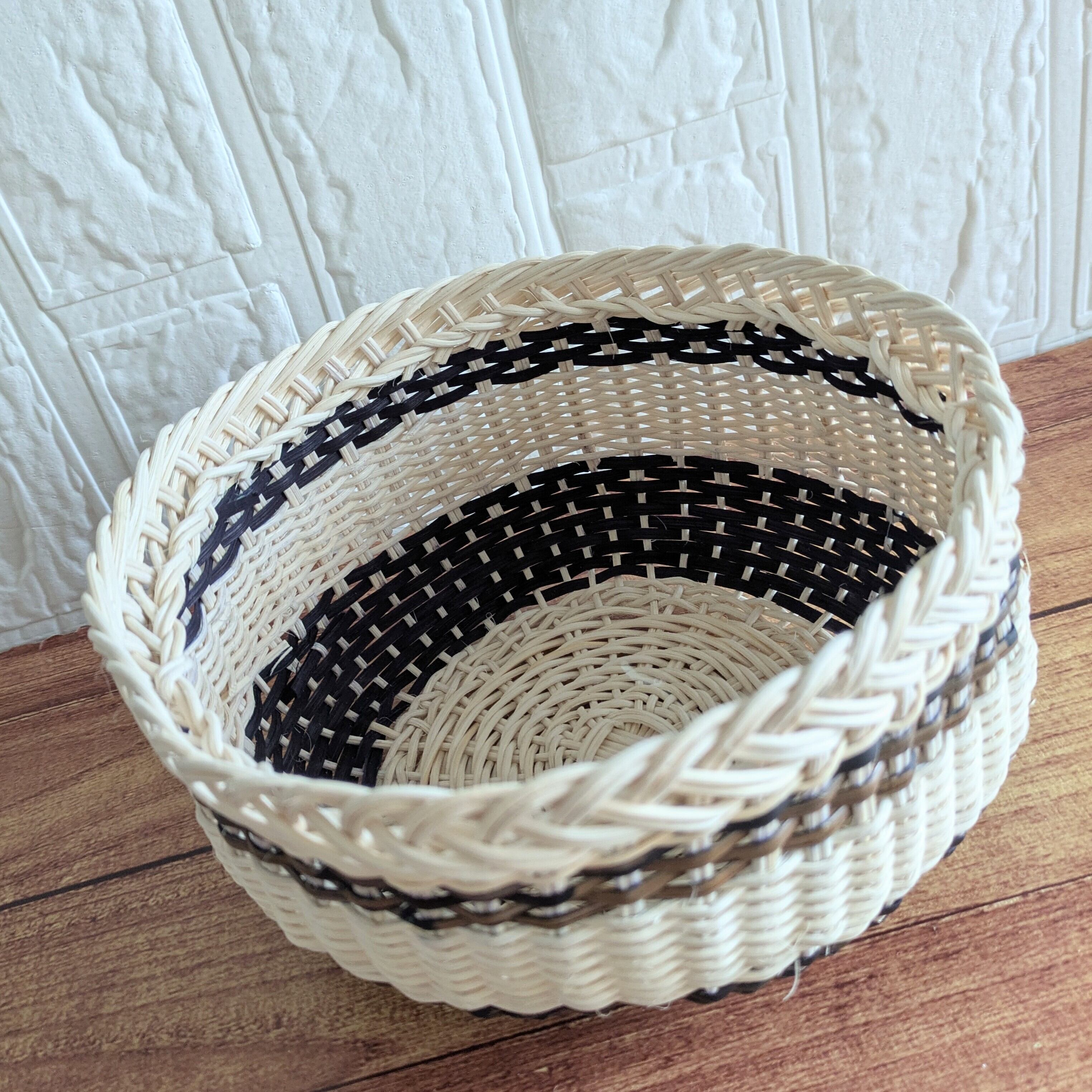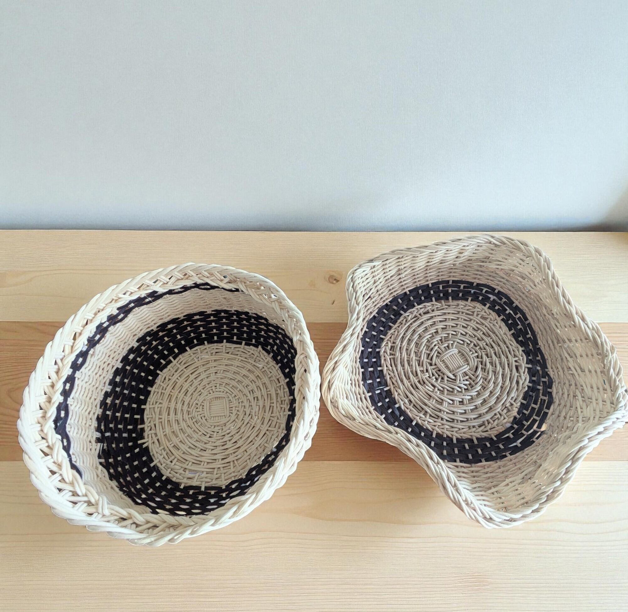 天然ラタン、黒く染色した竹皮を使って作られた小物入れです。