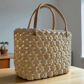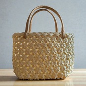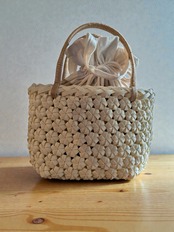 可憐な花結び編みで作られた、心ときめく手作りのかごバッグです。