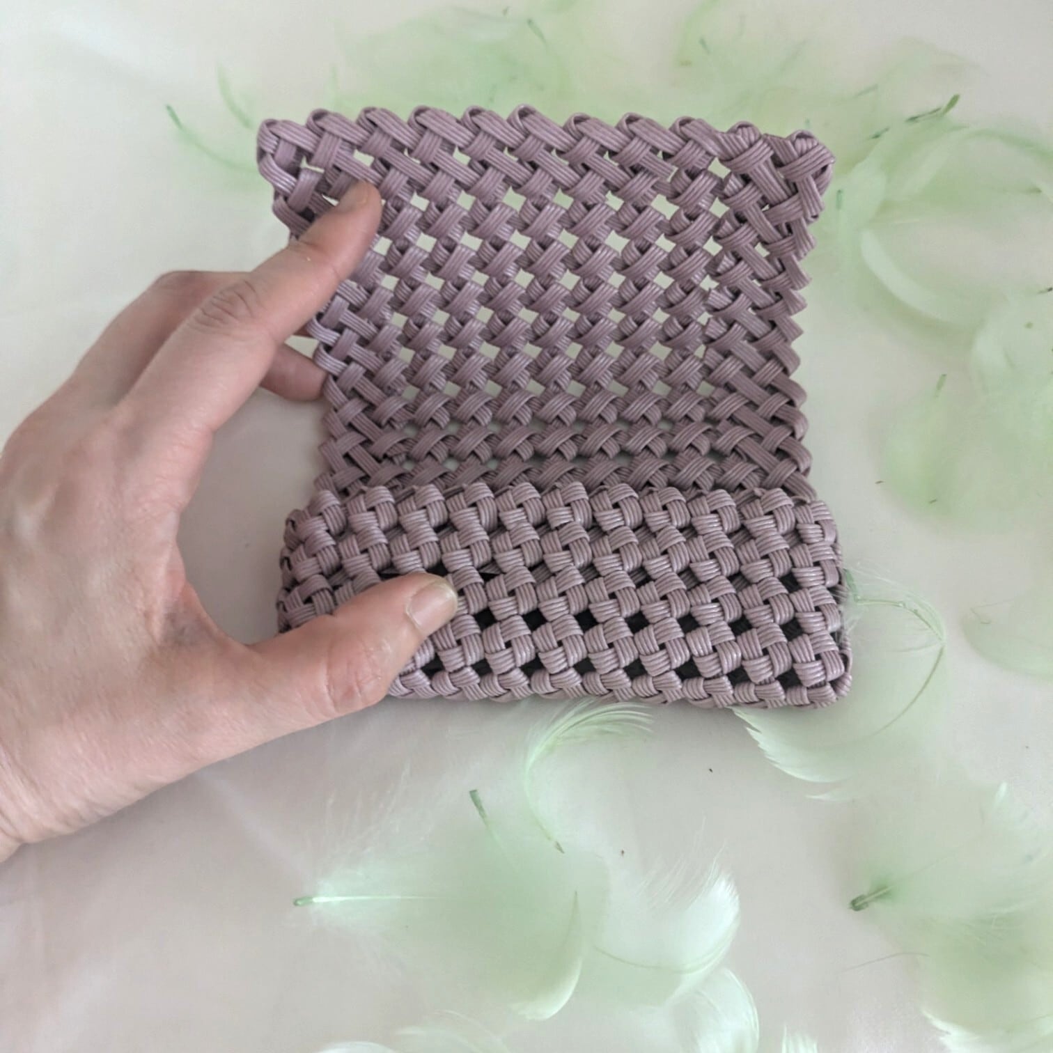 シンプルなカードケースですが、編み目の美しさが際立ち、手仕事が感じられる作品です。